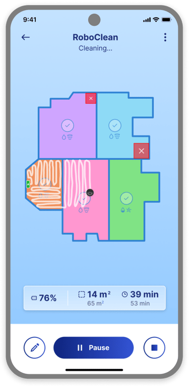 Flexibility: The app should allow flexible cleaning options for different parts of the home.